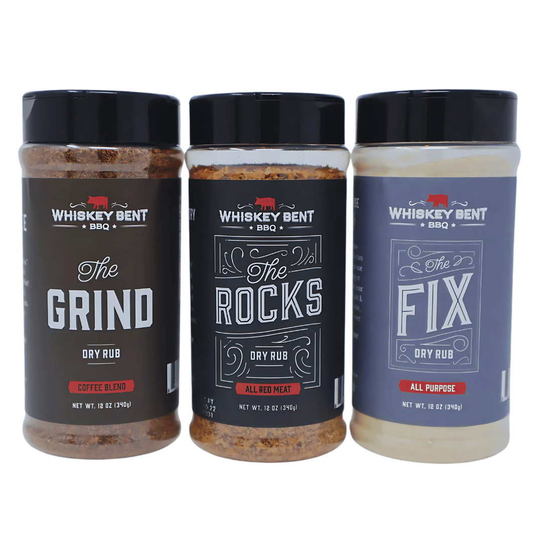 The Whiskey Bent Brisket Trifecta will take your brisket or any other red meat to the next level. Layer the all purpose flavors of The Fix with the depth of flavor of The Grind and then top it off with the pop of flavor that The Rocks brings to the party. You will not be disappointed with this trifecta! Each combo includes a 12oz Shaker of The Rocks, The Grind and The Fix.